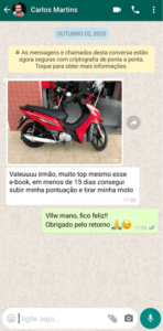 Eu já tinha comprado alguns métodos pra aumentar a pontuação do score e conseguir o financiamento da minha moto, porem nenhum deles atenderam minhas expectativas, foi quando vi um anúncio falando que esse era diferente e resolvi tentar pela última vez e graças ao método hoje tenho minha moto que eu nunca pensei que fosse ter um dia! .